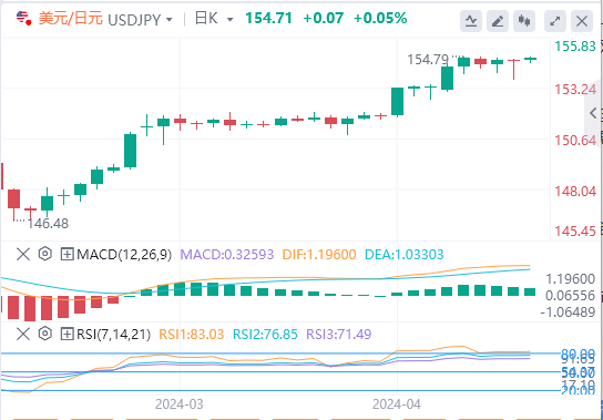 4月22日,周一欧市盘中,美元指数在106.14维持区间震荡,美元/日元微幅升至154.70。展望本周日本央行维持利率不变,但须谨慎季度预测报告出现变化,无法完全排除进一步加息的“黑天鹅”事件。美国GDP与PCE来袭,展望美元指数升至107的潜力巨大。