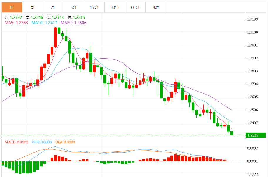 英镑:英镑/美元收低,收报1.2331,跌幅0.39%。技术面上,汇价上行的初步阻力位于1.2398,进一步阻力位于1.2455,关键阻力位于1.2488;汇价下行的初步支撑位于1.2308,进一步支撑位于1.2274,更关键支撑位于1.2218。