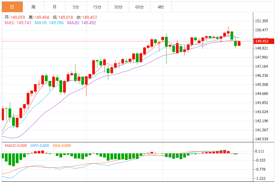 日元:美元/日元下跌,收报149.055,跌幅0.36%。技术面上,汇价上行的初步阻力位于149.673,进一步阻力位150.29,关键阻力位于150.725;汇价下行的初步支撑位于148.621,进一步支撑位于148.186,更关键支撑位于147.569。