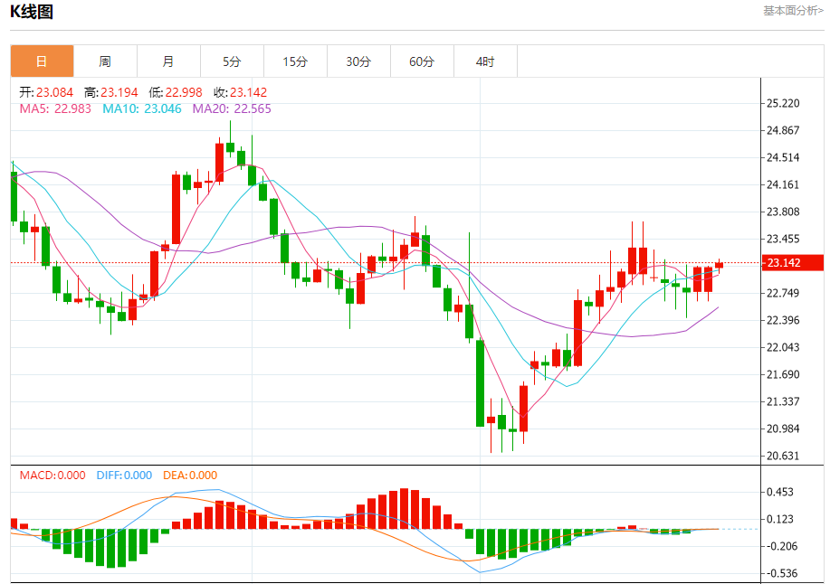 现货白银:截止北京时间20:22,现货白银上涨,现报23.140,涨幅0.33%。纽市盘前,白银价格显示出额外的看涨倾向,以远离23.00的水平,加强了继续看涨趋势的预期,实现我们在23.70的第一个主要目标的道路是开放的。