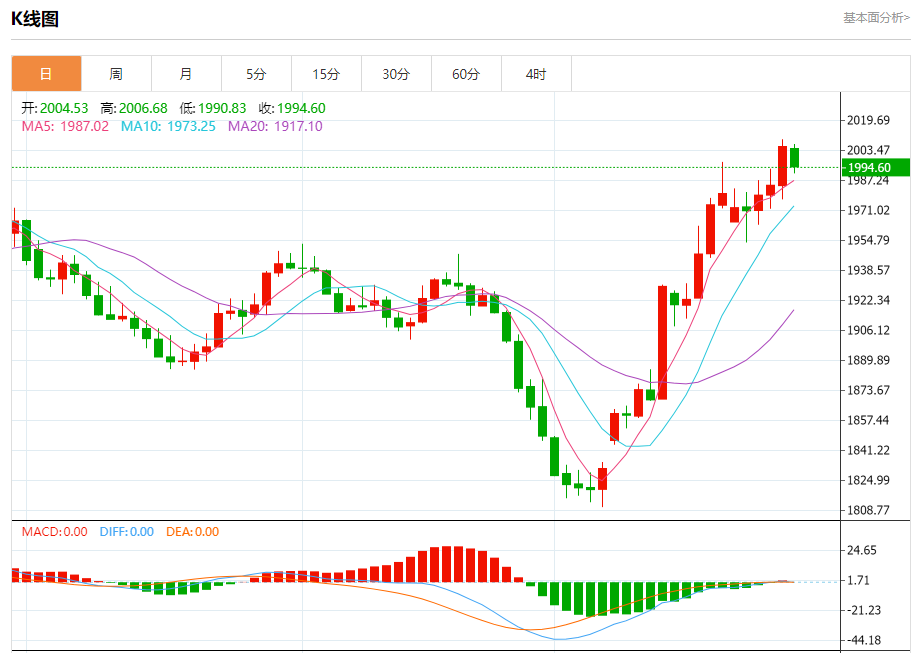 现货黄金:截止北京时间20:22,现货黄金下跌,现报1994.78,跌幅0.54%。纽市盘前,金价面临测试看涨通道支撑线的负面压力,受随机利空的影响,等待获得积极的动机,以帮助推动价格恢复预期的看涨趋势,目标是2016.90作为下一个主站。