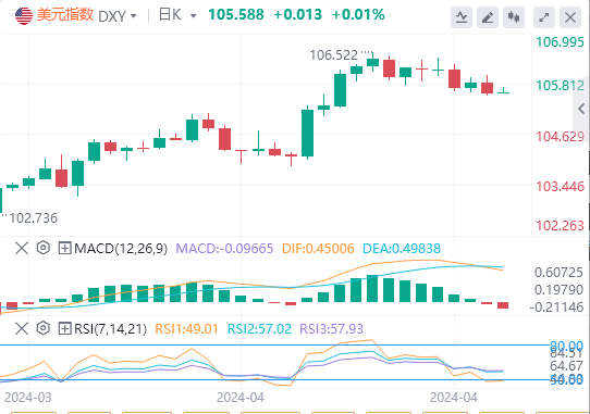 日本维持利率不变,美元/日元上涨36点至34年新高156,除日元交易外,美元略有走软,与早些时候GDP后跃升后的趋势一致。这一举动在各个方面都已经消退截至目前,美元报价105.588。