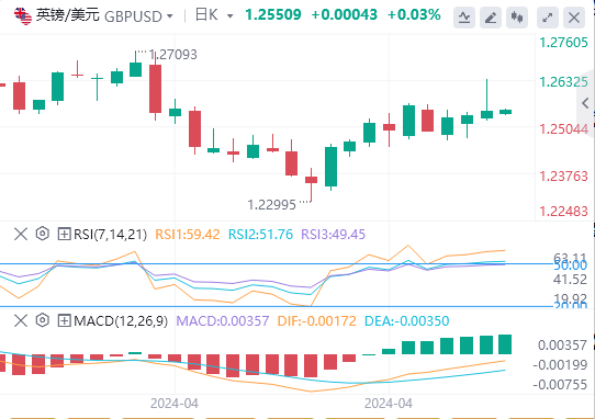 英镑:截止发稿,英镑/美元徘徊于1.2550附近。英镑/美元周一上涨,收报1.2547,涨幅0.10%。本周英国央行(BoE)将发布最新的利率电话会议和经济展望声明,下周晚些时候将公布英国经济增长的最新情况,包括季度国内生产总值(GDP)更新。目前预计英国GDP环比将较上一季度反弹至0.4%。技术面上,从1.3141中期顶部开始的价格走势被视为一种修正模式。从1.2892跌出被视为可能已经完成的第三条腿。突破1.2892阻力位将表明,从1.0351(2022年低点)开始的更大上升趋势已准备好恢复至1.3141。同时,突破1.2298支撑位将扩大修正形态。