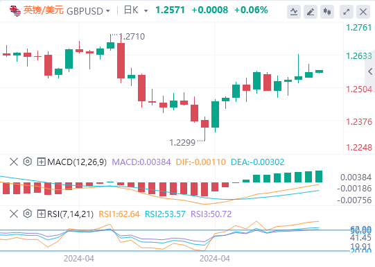 英镑:截止发稿,英镑/美元徘徊于1.2571附近。英镑/美元周一上涨,收报1.2555,涨幅0.06%。预计英国央行将在周四的5月会议上将利率维持在5.25%。交易员将密切关注可能的降息时间表和英国央行的利率指引。尽管如此,英国央行行长安德鲁·贝利(AndrewBailey)和副行长戴夫·拉姆斯登(DaveRamsden)在4月份的鸽派言论引发了人们的猜测,即英国央行的宽松周期可能更接近欧洲央行(ECB),而不是美联储。英国央行行长贝利指出,他相信4月份整体通胀率将恢复到2%的理想水平。英国央行的鸽派立场可能会令英镑承压,并限制该货币对的下行空间。技术面上,汇价上行的初步阻力位于1.2591,进一步阻力位于1.2621,关键阻力位于1.2647;汇价下行的初步支撑位于1.2535,进一步支撑位于1.2509,更关键支撑位于1.2479。