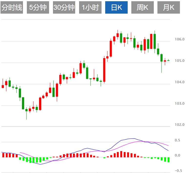 美元:截止发稿,美元现报105.09,日内下跌0.002%。美元指数(DXY)目前交投于105附近,反映出周一交易时段的小幅下跌。正如美联储主席杰罗姆·鲍威尔(Jerome Powell)所说,持续通胀仍然令人不安地高企,使美元保持稳定。话虽如此,上周五公布的疲软就业报告提供了一些线索,表明美国经济可能正在发出信号,表明美联储开始降息所需的降温已经开始。这可能会引发美元进一步下行。本周的美国数据仍然不温不火,美联储(Fed)各位主席本周发表讲话的美联储讲话处于最前沿。技术上,日线图上的技术指标反映了美元指数的混合信号。相对强弱指数(RSI)的负斜率和负区域表明空头似乎正在取得进展。移动平均收敛散度 (MACD) 上升的红色柱线进一步证实了这一趋势,这表明看跌势头。然而,尽管存在这种负面环境,但也存在一些看涨因素。