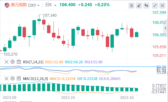 美元指数:截止发稿,美元指数上涨,现报106.40,涨幅0.23%。欧市盘前,美元兑其他货币均走高,而美国国债基本持平。美国财政部周一下调了当前季度的联邦借款预期,理由是收入强于预期。