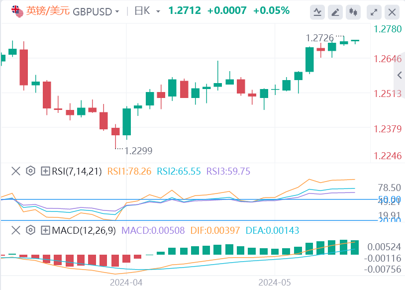 英镑/美元在狭窄通道内上下波动,周一收于1.2700上方。该货币对在欧洲早盘时段在1.2720附近小幅下跌。