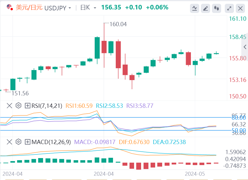 美元/日元周一小幅走高,收于156.00上方。周二早些时候,该货币对仍处于该水平附近的盘整阶段。