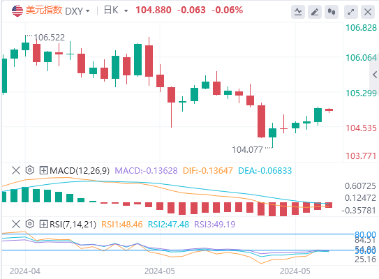 周三,美元指数反弹至周内新高,向上逼近105关口,截至目前,美元报价104.880。