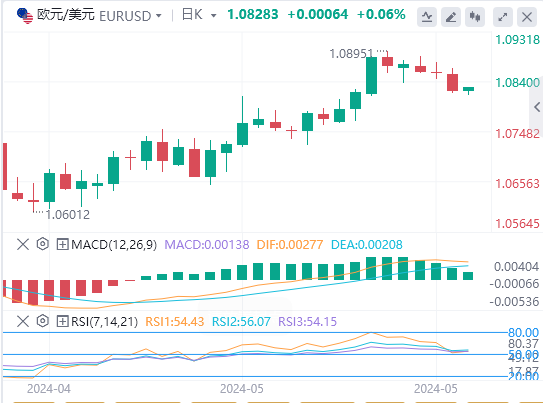 欧元:截止发稿,欧元/美元徘徊于1.0828附近。欧元/美元上周三下跌,收报1.0821,跌幅0.29%。欧元区经济基本面相对低迷的,且美国经济维持韧性,支持了中期美元走强的预期,特别是在欧洲央行可能会在美联储之前降息这一概率不断加大的情况下。技术面上,如果欧元/美元收于50均线下方1.0838,它将走向下一个支撑位,即1.0785-1.0800区间。