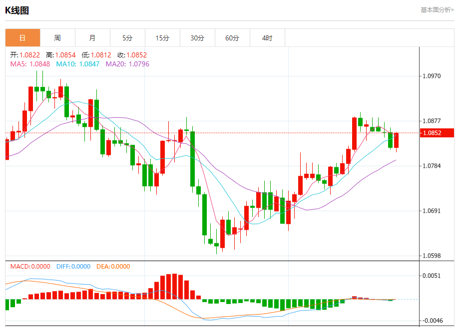欧元/美元:截止北京时间20:22,欧元/美元上涨,现报1.0853,涨幅0.28%。纽市盘前,受随机利好的影响,欧元兑美元价格以明显的利好交易,逼近看涨通道的破位支撑。