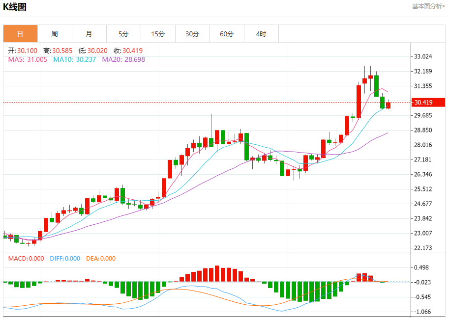 现货白银:截止北京时间20:22,现货白银上涨,现报30.424,涨幅1.08%。纽市盘前,白银价格再次测试了被打破的看涨趋势线,并保持其稳定性低于该线,以保持今天建议的看跌趋势,我们仍在等待打破30.06美元,以确认向我们的下一个负面目标29.30美元反弹,提醒您熊市的持续取决于30.45美元以下的价格稳定性,最重要的是31.00美元以下。
