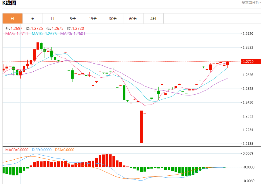 英镑/美元:截止北京时间20:22,英镑/美元上涨,现报1.2721,涨幅0.18%。纽市盘前,GBPUSD价格交易积极,试图突破1.2700美元水平,正如我们今天上午提到的那样,价格需要保持在这一水平以下,以保持今天的看跌趋势活跃,目标主要是1.2630美元,其次是1.2580美元水平。