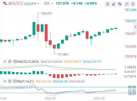 美元的升值给日元带来了压力。日元兑美元交投在157.04,距离周四触及的逾三周低点157.19不远。