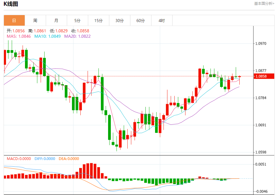 欧元/美元:截止北京时间20:22,欧元/美元上涨,现报1.0857,涨幅0.00%。纽市盘前,在随机利好的推动下,欧元兑美元价格依靠看涨通道的支撑线,并从那里开始强劲反弹。