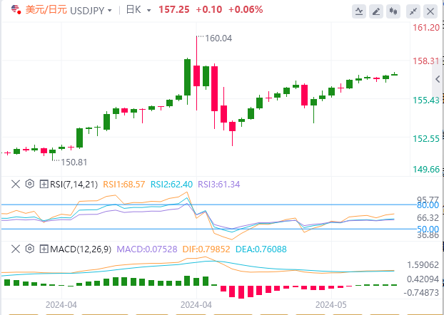 美元兑日元周三升至157.41的四周高点,兑欧元和英镑均上涨约0.1%。澳元兑美元小幅下滑至0.6645,回吐稍早涨幅,因上月澳洲消费者物价指数意外跳升。