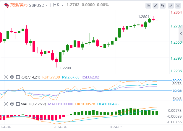 英镑/美元周二触及1.2800上方一个多月来的最高水平,但回吐涨幅,收于1.2750上方。该货币对当日小幅走高,欧洲早盘在1.2770附近。