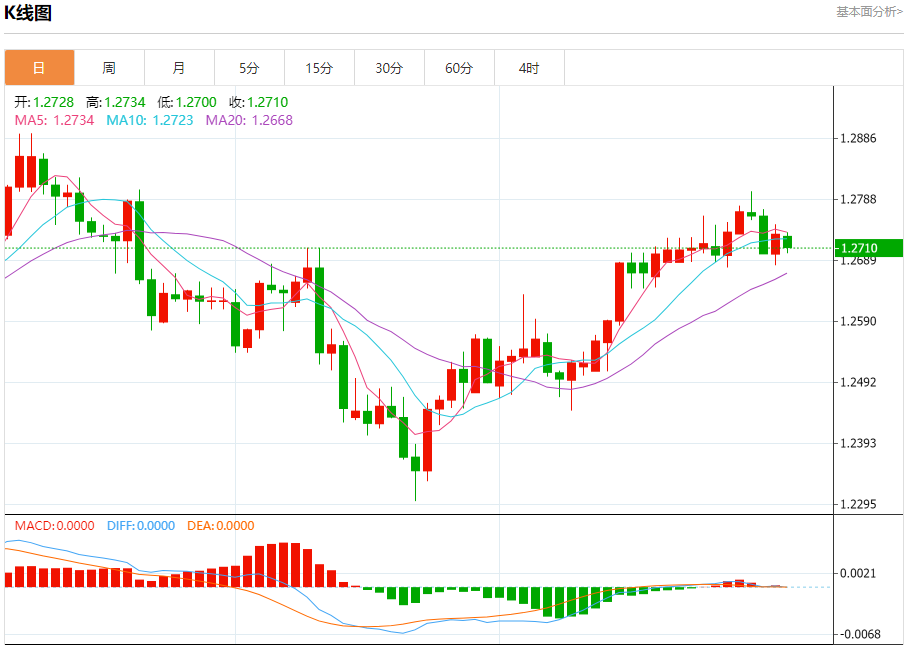 英镑/美元:截止北京时间20:22,英镑/美元下跌,现报1.2711,跌幅0.17%。纽市盘前,GBPUSD价格对1.2700美元水平进行了新的测试,并保持其稳定性高于1.2700美元水平,以保持今天的看涨趋势,等待向1.2893美元的下一个主要目标迈进,提醒您突破1.2700美元将使价格处于负面压力下,目标是1.2630美元,然后是1.2580美元。
