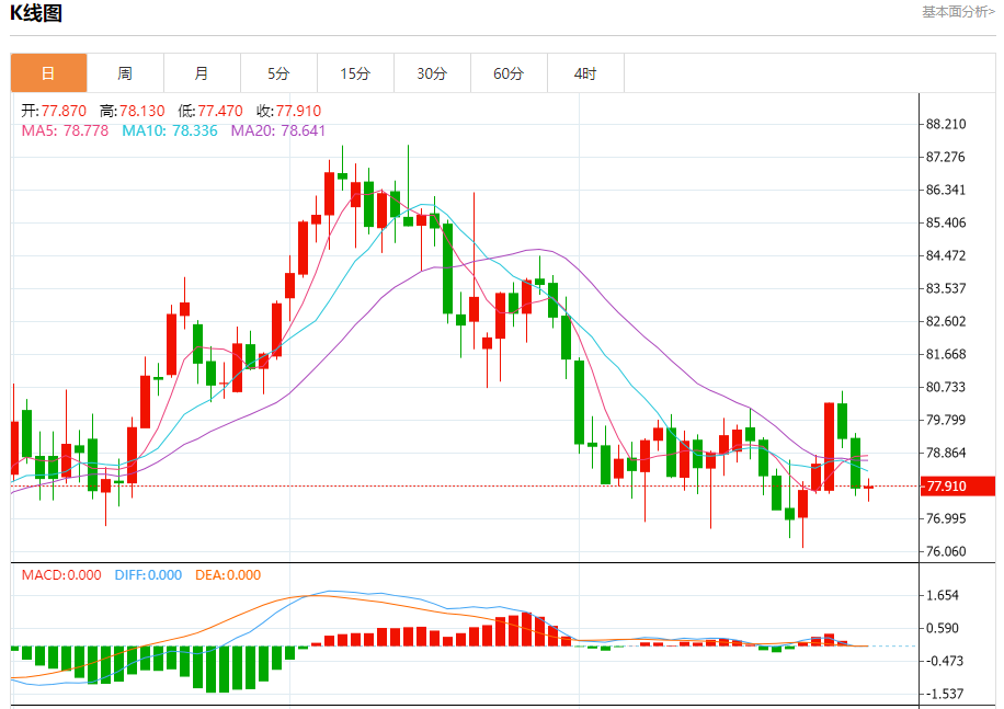 原油市场:截止北京时间20:22,美油下跌,现报77.87,跌幅0.05%。纽市盘前,原油价格显示出看涨倾向,以测试78.25美元的小幅阻力,注意到突破该水平将推动价格实现盘中上涨并在当天剩余时间内转向上涨,目标测试79.60美元区域,然后再次转向下跌。