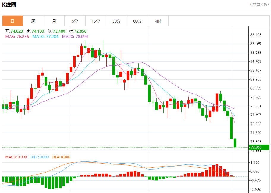 原油市场:截止北京时间20:20,美油下跌,现报72.83,跌幅1.87%。纽市盘前,原油价格持续下跌,以成功实现我们的第一个目标73.15美元,并测试73.00美元/桶的障碍,等待更多的看跌偏见,以实现其他负面目标,达到71.35美元。