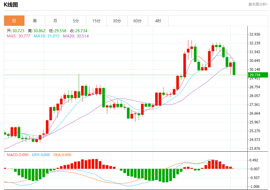 现货白银:截止北京时间20:20,现货白银下跌,现报29.74,跌幅3.10%。纽市盘前,白银价格现在开始攻击30.06美元的水平,以支持在即将到来的时期继续看跌趋势的主导地位,因为它开始激活图表上出现的双顶模式的负面影响,为实现从29.30美元开始并延伸到28.55美元的新目标铺平了道路。