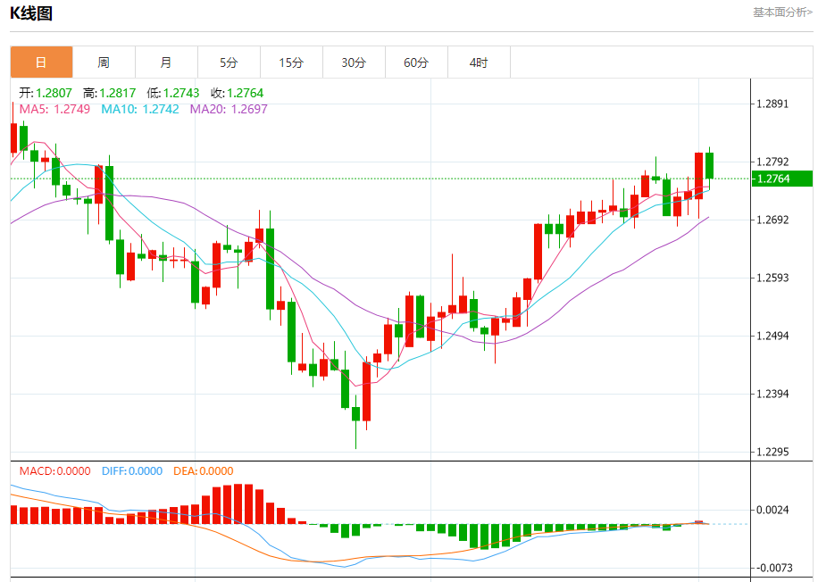英镑/美元:截止北京时间20:20,英镑/美元下跌,现报1.2765,跌幅0.34%。纽市盘前,受RSI负值影响,GBPUSD价格显示出对关键支撑位1.2700美元的潜在测试的看跌倾向,只要价格高于该水平,我们对即将到来的时期的看涨观点将保持有效,并受到EMA50的支持,提醒您我们主要等待访问1.2893美元。
