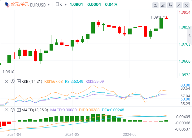 欧元/美元蓄势待发,升至3月下旬以来的最高水平1.0910上方。周二早盘,该货币对在1.0900附近处于盘整阶段。