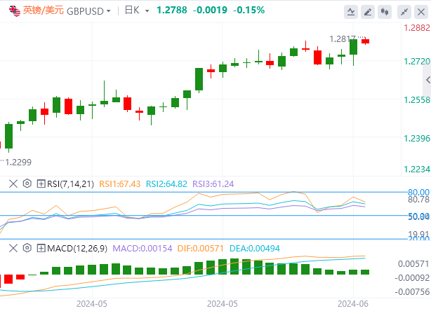 欧元:欧元/美元从1.0601开始反弹,突破1.0894阻力位。盘中偏差从1.0788的1.0969重新上行,预测为1.0601至1.0894,为0.8%。目前,只要1.0788支撑位守住,风险就会保持上行,以防回落。