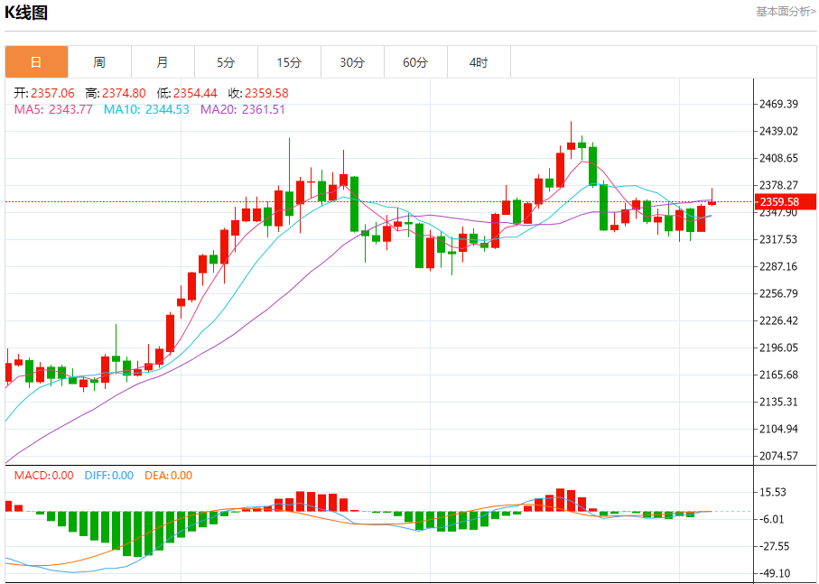 现货黄金:截止北京时间20:20,现货黄金上涨,现报2359.58,涨幅0.19%。纽市盘前,受随机负面因素影响,金价目前显示出轻微的看跌倾向,但只要价格高于2340.10美元,我们的看涨观点就将保持有效,目标是2400.00美元,然后是2450.00美元水平作为下一个主要关口。