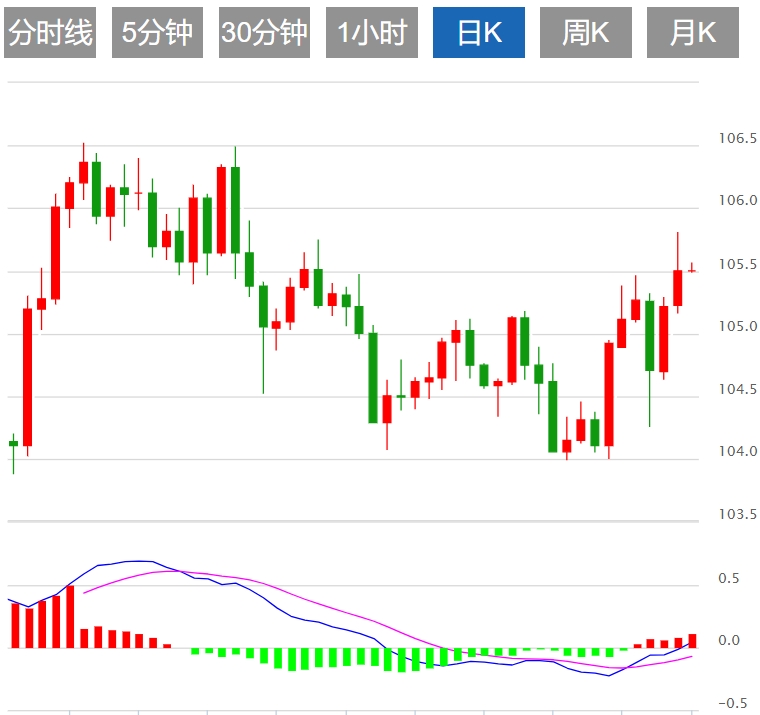 美元:截止发稿,美元指数现报105.50,日内下跌0.001%。在美联储保持利率稳定的同时,欧洲央行和加拿大央行已经开始降息,这使得美元受到避险资金和寻求收益资金的双重推动。美元的强势可能在短期内持续,但需关注美联储官员的讲话和经济数据的发布。技术上,美元指数(DXY)在触及104.00附近的近期低点后重拾强劲势头,并突破105.00关口,升至多周新高。如果该指数突破6月份的高点105.80(6月14日),则可能试图触及2024年的顶部106.51(4月16日)。 突破这一水平后,11月最高点107.11点(11月1日)可能会出现在2023年最高点107.34点(10月3日)之前。