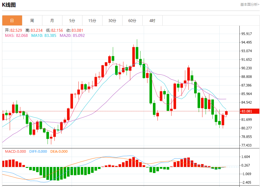 原油市场:截止北京时间20:20,美油上涨,现报83.094,涨幅0.76%。纽市盘前,原油价格显示了额外的积极交易,逐渐接近我们的第一个等待目标84.55,等待突破这一水平,以确认牛市趋势的延续,并实现额外的收益,达到86.65。