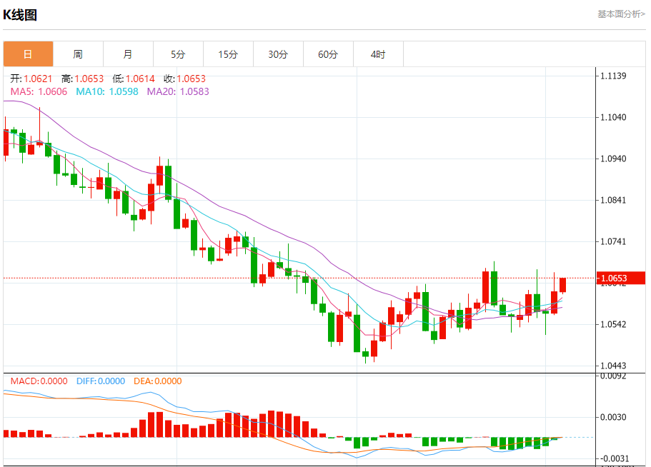 欧元/美元:截止北京时间20:20,欧元/美元上涨,现报1.0655,涨幅0.31%。纽市盘前,从早上开始,窄幅震荡主导着欧元对美元的交易,等待美国经济数据的发布,我们预计这将导致市场的高度波动。