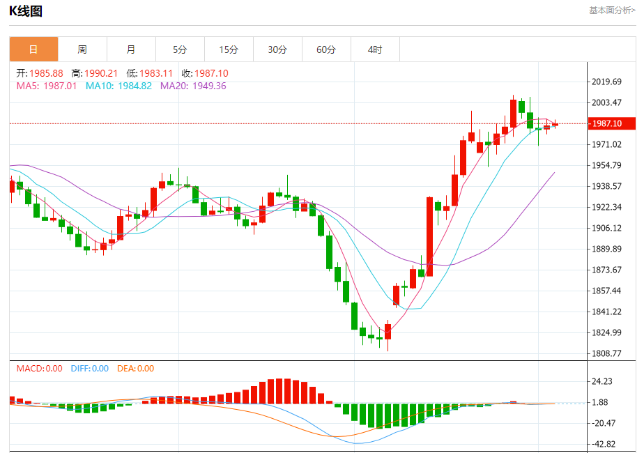 现货黄金:截止北京时间20:20,现货黄金上涨,现报1987.15,涨幅0.08%。纽市盘前,黄金价格保持在狭窄的轨道上运行,因此,我们的看跌观点没有改变,这取决于价格稳定在1993.00以下,等待访问1962.35作为下一个主要目标,提醒您,突破1993.00将导致价格试图重新获得主要的看涨趋势,并实现从测试2009.30开始的收益。