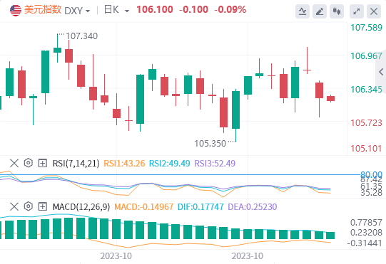 美联储本周已经发表了讲话,他们似乎也满足于保持冷静,让经济对紧缩的条件做出反应。这些情况在一定程度上是美联储通过过去的紧缩政策引起的,这使美联储基金的目标从0.25%降至5.50%。最近,市场引发的紧缩政策为美联储做了工作。截至目前,美元报价106.1。