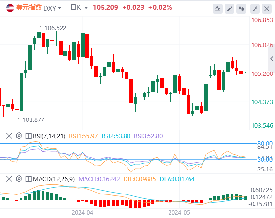 美元指数:截止发稿,美元指数交投于105.20附近。由于交易员对NAHB住房市场指数报告做出反应,美元指数正在下跌。报告显示,NAHB住房市场指数从5月份的45下降到6月份的43,而分析师普遍认为为45。技术面上,如果美元指数跌破50均线的支撑位105.22,它将走向下一个支撑位,即104.40-104.60区间。