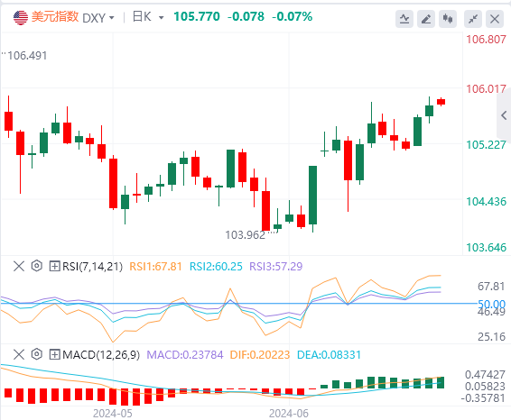 上周五,美元指数全周累涨0.2%,连涨三周,日内收涨0.16%,报105.76。截至目前,美元报价105.77。