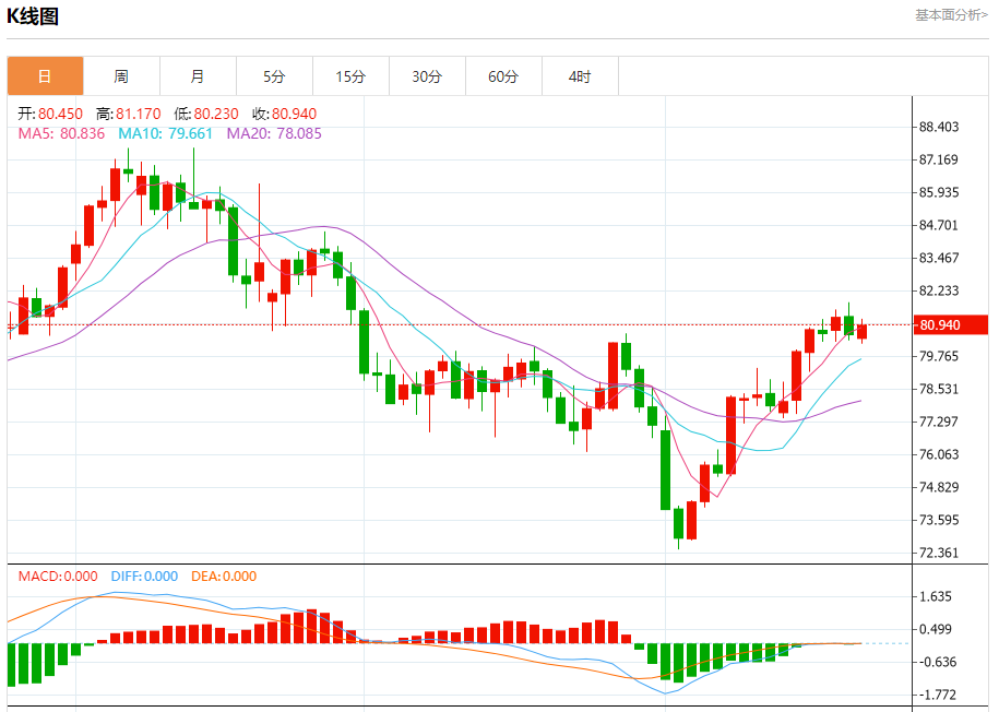 原油市场:截止北京时间20:21,美油上涨,现报80.930,涨幅0.26%。纽市盘前,原油价格交易积极,开始测试81.50美元水平,正如我们今天早上提到的,价格需要突破这一水平,以加强对未来几个交易日继续看涨趋势的预期,提醒你我们等待的目标从82.25美元开始,然后是83.90美元。