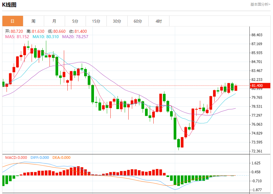 原油市场:截止北京时间20:26,美油上涨,现报81.390,涨幅0.72%。纽市盘前,原油价格成功突破81.50美元水平,并在该水平上方关闭了过去四个小时的烛台,加强了在今天剩余时间内有效延续看涨趋势的预期,为实现我们从82.25美元开始并延伸至83.90美元的积极目标开辟了道路。