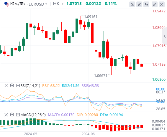 德国7月GfK消费者信心指数从-21.0小幅下降至-21.8。欧元/美元保持温和压力,周三欧洲早盘交投于1.0700下方。