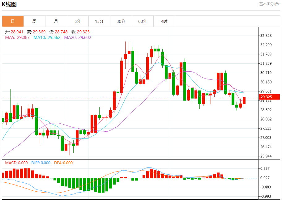 现货白银:截止北京时间20:26,现货白银上涨,现报29.317,涨幅1.28%。纽市盘前,银价开始试图突破29.30美元的水平,暗示着潜在的上涨机会。重要的是要仔细监测即将到来的交易,因为确认突破将导致价格继续上涨,并从测试30.06美元区域开始实现收益。