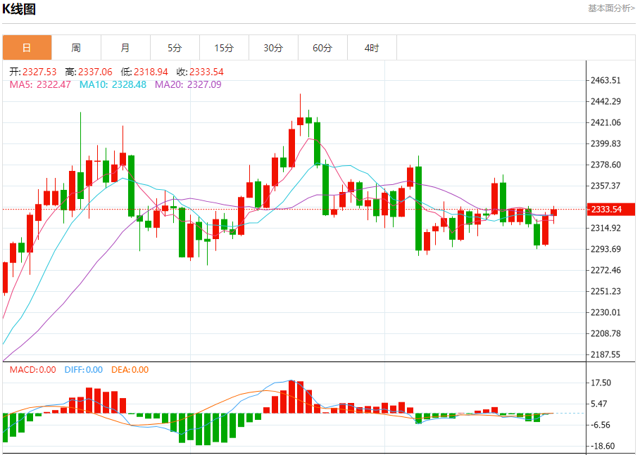 现货黄金:截止北京时间20:26,现货黄金上涨,现报2333.54,涨幅0.26%。纽市盘前,黄金价格提供了额外的积极交易,以测试2340.10美元的关键阻力,这促使对即将到来的交易保持谨慎。继续上涨并突破这一水平将推动价格转向看涨,并启动一波以2385.00美元开始的牛市。