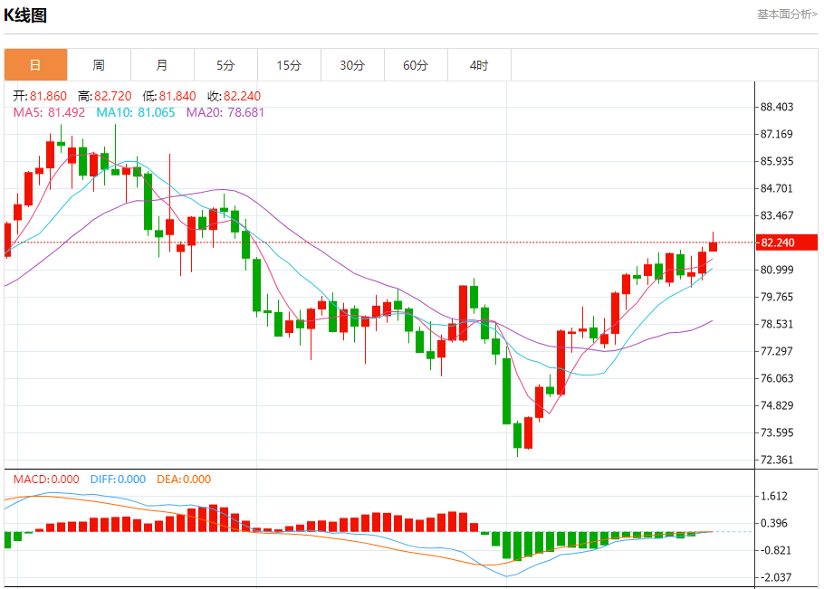 原油市场:截止北京时间20:26,美油上涨,现报82.210,涨幅0.59%。纽市盘前,原油价格达到了每桶83.00美元的关口,等待进一步上涨以实现我们在83.90美元的下一个主要目标,突破它代表着走向84.90美元作为下一站的关键。