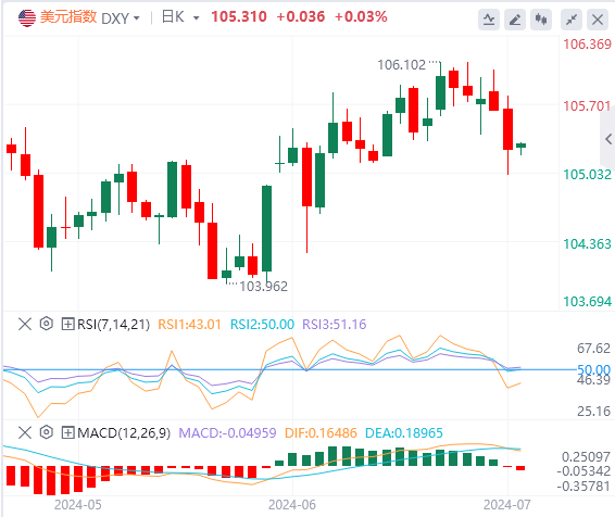 周三美元指数一度逼近105关口,最终收跌0.354%,报105.25。美债收益率普遍下跌,10年期美债收益率收跌8.8个基点。截至目前,美元报价105.31。