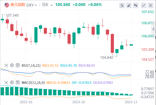 11月9日,周四亚盘,美元指数交投于105.58附近。本周不会发布高级报告。市场正在等待下周美国的通胀数据,并且仍在消化上周五的美国非农就业报告。