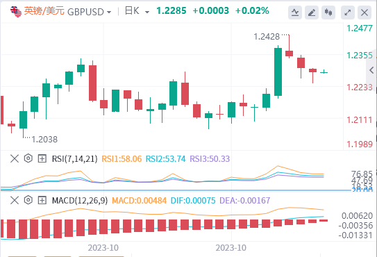 欧元:截止发稿,欧元/美元徘徊于1.0706附近。昨日欧元/美元上涨,收报1.0709,涨幅0.09%。华尔街描绘了乐观的市场情绪,这通常会对美元有害,但今天不会。德国工业生产数据差于预期,重新点燃了欧元区经济衰退的担忧。技术面上,元/美元在本周早些时候未能突破斐波那契阻力位 1.0765 后,在过去几天有所回落。然而,该货币对已经成功地在1.0700手柄附近建立了一个基础,并开始振作起来,表明抛售压力正在减弱。如果反弹在未来几个交易日延续,则值得关注的初始上限为1.0765。进一步走强后,注意力将转移到1.0840。
