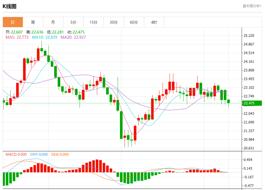 现货白银:截止北京时间21:20,现货白银下跌,现报22.471,跌幅0.59%。纽市盘前,自上午以来,白银价格在狭窄的轨道内波动,只要价格低于23.00,我们的看跌观点将在今天保持有效,并受到EMA50形成的负压的支持,注意我们正在等待目标22.25以及随后的21.35水平作为主要的负站。