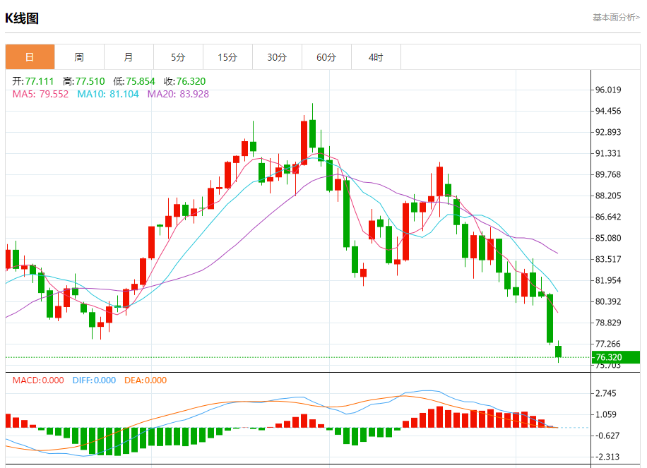 原油市场:截止北京时间21:20,美油下跌,现报76.329,跌幅0.97%。纽市盘前,原油价格继续在77.86附近波动,等待突破该水平以确认向我们的下一个目标反弹,该目标从75.50开始并延伸至73.75作为下一个主要站,注意熊市的持续取决于79.05下方的价格稳定性。