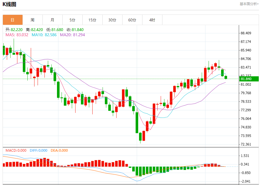 原油市场:截止北京时间20:21,美油下跌,现报81.850,跌幅0.57%。纽市盘前,原油价格显示额外的负面交易触及81.84美元,并试图打破它,加强了在未来几个交易日继续主导熊市趋势的预期,受先前完成的双顶形态影响,提醒您我们的下一个目标达到80.08美元。